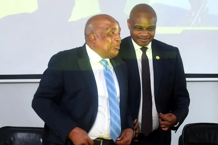 Special Investigating Unit (SIU) head Advocate Andy Mothibi (right) and Health Minister Aaron Motsoaledi at the release of an interim report into allegations of corruption and maladministration at Tembisa Hospital on September 29, 2025. Advocate Mothibi has been appointed to the position of National Director of Public Prosecutions at a very critical time. As such, he has his work cut out for him, says the writer.